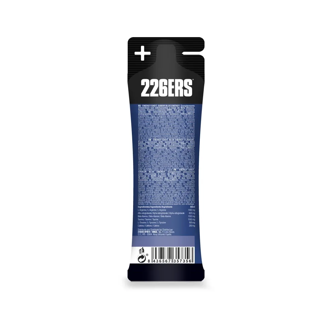 Energy shot es un producto con textura líquida de 60 ml, formulado con ingredientes específicos para mejorar el rendimiento del deportista y reducir la fatiga durante los entrenos y las competiciones.