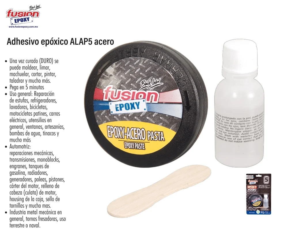 LION-0512 | Una vez duro se puede moldear, limar, cortar, pintar, taladrar, etc. | Pega en 5 min | Uso de reparación de estufas, refrigeradores, lavadoras, bicicletas, motocicletas, patines, carros eléctricos, utensilios en general, ventanas, artesanías, bombas y mucho mas | Para reparaciones mecánicas e industria metal mecanica