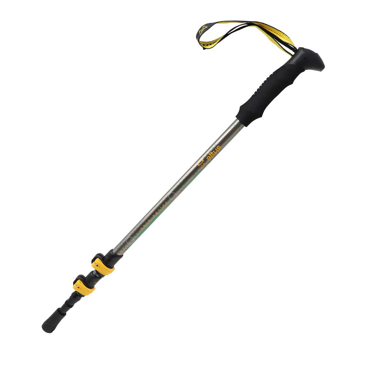 Baston de aluminio 7075 telescópicos de 3 tramos con cierres rápidos CLICK LOCK, punta de widia con tuerca y protector de goma. Cuenta con espumas torneadas antideslizantes de alta densidad y dragoneras regulables.