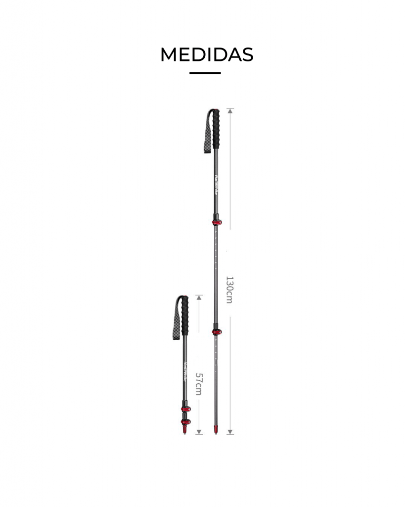 - Bastón de trekking Ultralight Carbon ST10 de Naturehike es telescópico y hecho de fibra de carbono, lo que permite que sea ultraligero, resistente y duradero. Cuenta con un sistema de bloqueo externo de alta resistencia que ofrece una buena estabilidad y seguridad.