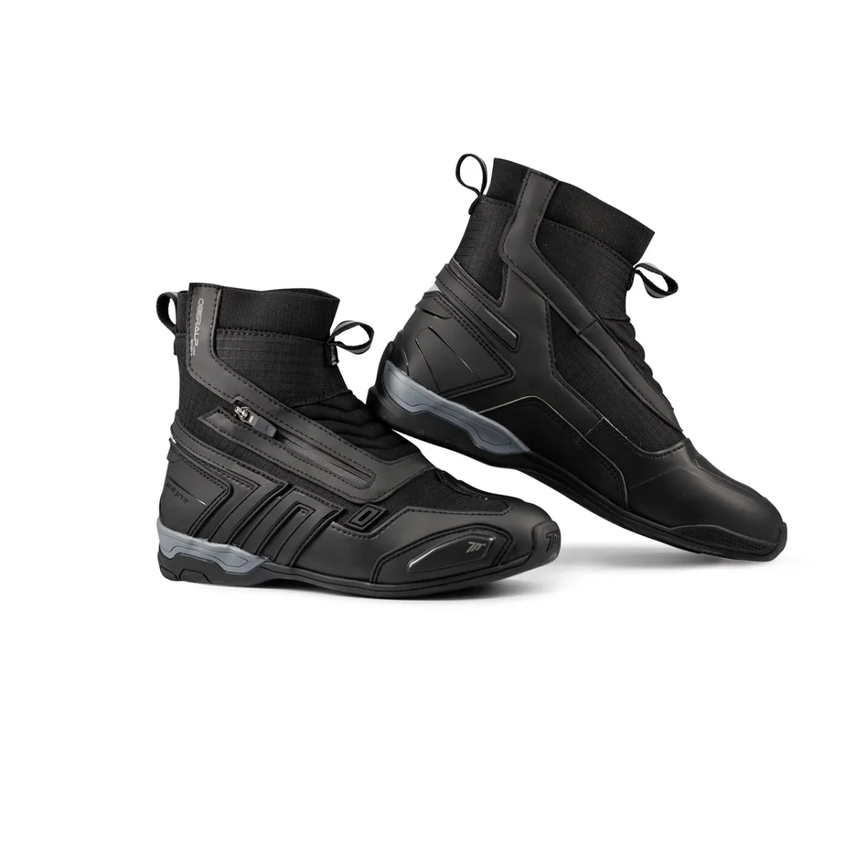 The Seventy 70 SD-BT9 Oberalp Low boots combine sport-touring style with a mid-cut design, made from synthetic leather and nylon. These boots are ideal for rides in various conditions, thanks to Dry70 technology, which incorporates a waterproof membrane to keep feet dry and comfortable.