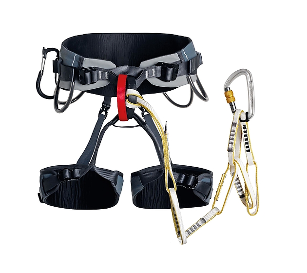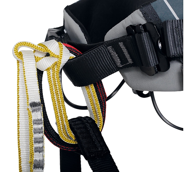 - Primer lazo adaptado para la conexión al arnés con vuelta de la cinta