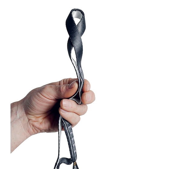 - Doble bucle en el extremo que proporciona una fijación segura y ajustable del escalador al punto de anclaje