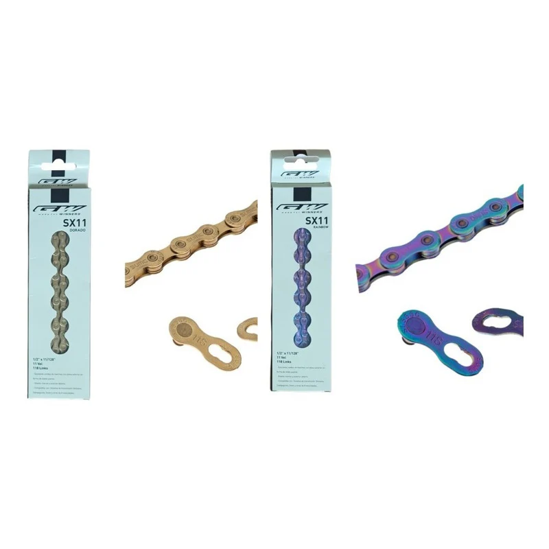 CADENA 11V 1/2″x11/128″*126L SX11 DORADA O TORNASOL GWACERO ALTA ALEACIÓN _DORADA_0.282 KG _1/2″X11/128″*126L, INCLUYE QRSCARACTERISTICASCADENA DE PASO ESTRECHO (CADENILLA) PARA 11 VELOCIDADES, MODALIDAD RUTA, MTB O GRAVEL MEDIDA 1/2″X11/128″ CON 126 LINKS, INCLUYE QRS.EMPAQUE TIPO HEADER EXCELENTE CAMBIO DE MARCHAS CON PLACA EXTERIOR EN FORMA DE DOBLE PUENTE, DISEÑO INTERIOR Y EXTERIOR ABIERTO. COMPATIBLE CON SISTEMAS DE TRASMISIÓN DE 11 VELOCIDADES MÁS COMUNES DEL MERCADO.