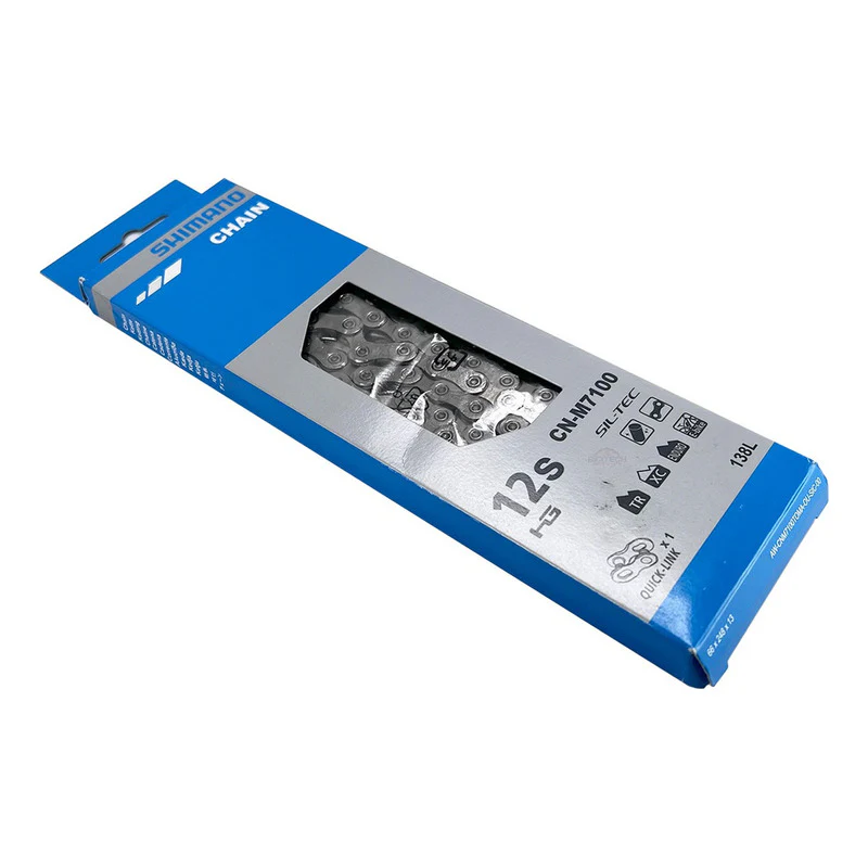 La cadena M7100 mejora la retención de la cadena gracias a una parte extendida de la placa interior. La cadena actualizada está equipada con montaje rápido de eslabones y tratamiento SIL-TEC para una mayor durabilidad en montaña.