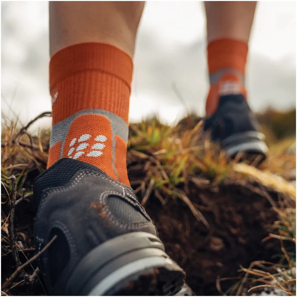 Diseñados para el aire libre, estos calcetines de compresión de corte medio de merino para mujer aumentan la circulación, reducen la hinchazón y regulan la temperatura. El diseño anatómico de estos calcetines de senderismo, combinado con una puntera asimétrica y un acolchado específico para cada zona, ayuda a prevenir ampollas incluso en las caminatas más desafiantes. El largo de corte redondo los convierte en la combinación perfecta para casi cualquier calzado de senderismo.