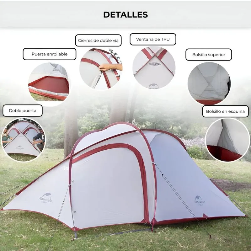 - Espacio interior: Suficiente espacio para dos personas con equipo, ofreciendo una cómoda estancia en la naturaleza.