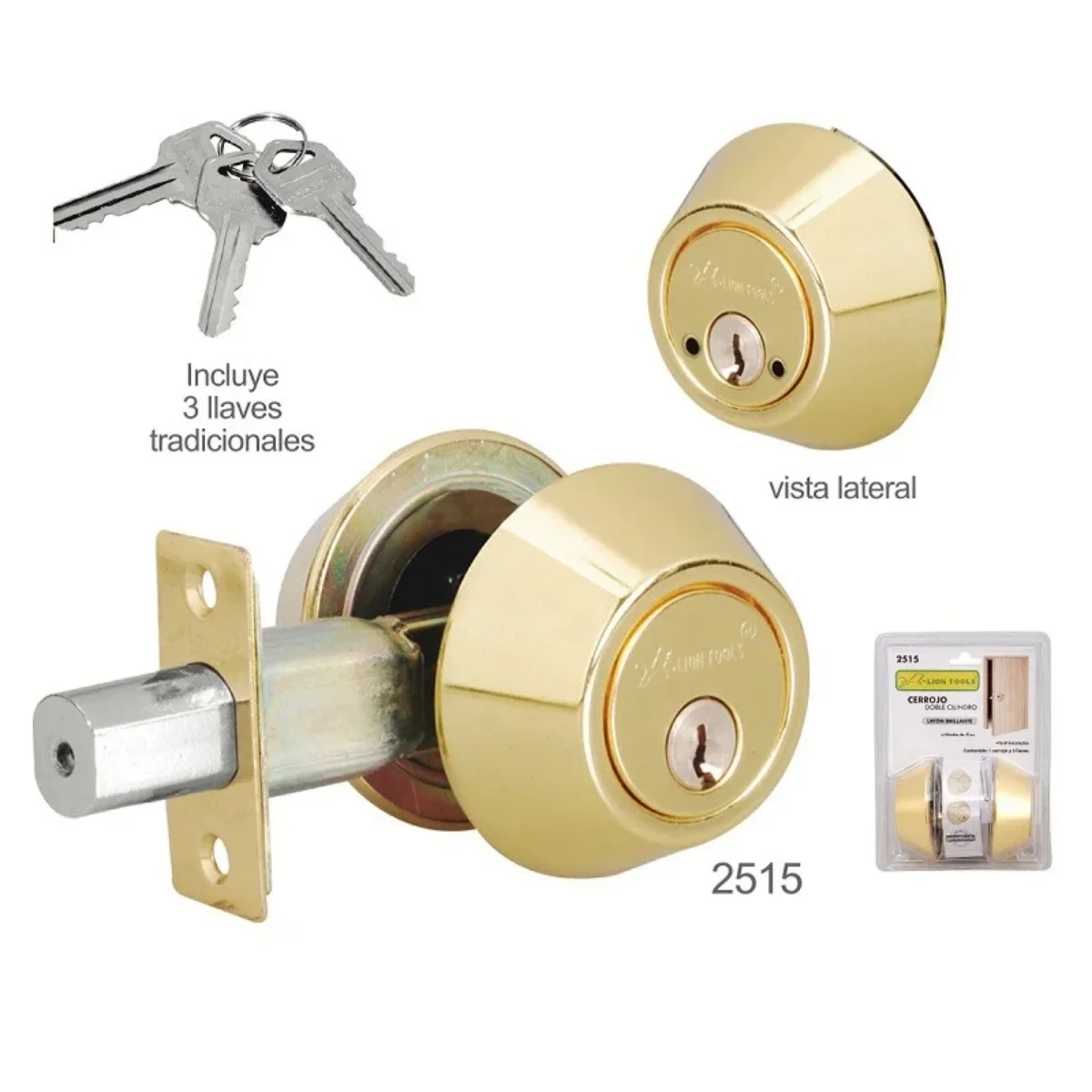 Cerrojo doble cilindro laton brillante lion tools
