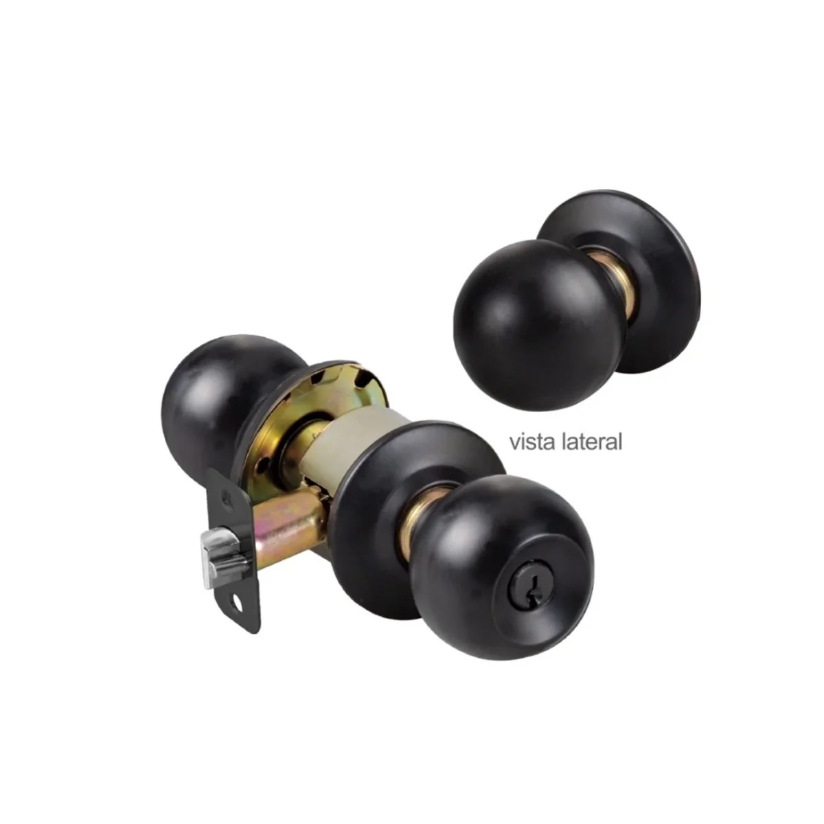 Cerradura de perilla negra para entrada es un tipo de cerradura diseñada para instalarse en puertas exteriores específicamente en las entradas. Incluye una perilla ergonómica y un mecanismo de cierre con llave. Su acabado en color negro le da un toque moderno y elegante, integrándose perfectamente en decoraciones contemporáneas o minimalistas.