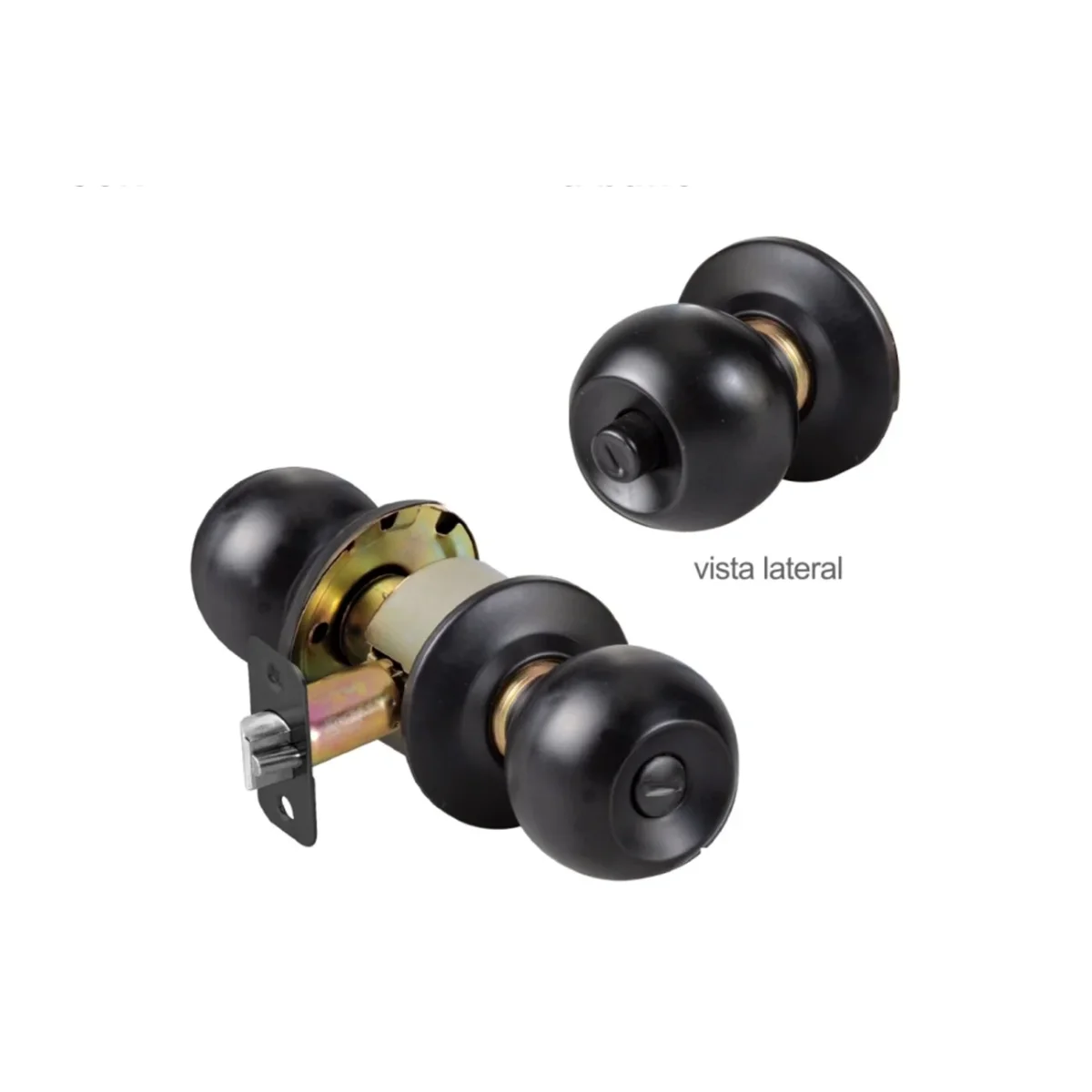 Cerradura de pomo negra para baño es un tipo de cerradura diseñada para instalarse en puertas interiores, específicamente en baños. Incluye una perilla ergonómica y un mecanismo de bloqueo con seguro de botón. Su acabado en color negro le da un toque moderno y elegante, integrándose perfectamente en decoraciones contemporáneas o minimalistas.