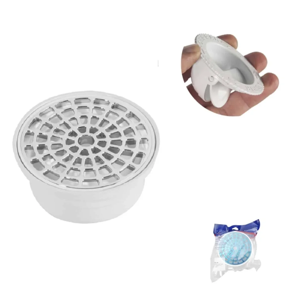 Coladera redonda se coloca en piso y permite que no entren animales por el desagüe y también evita que se obstruya la tubería con basura.