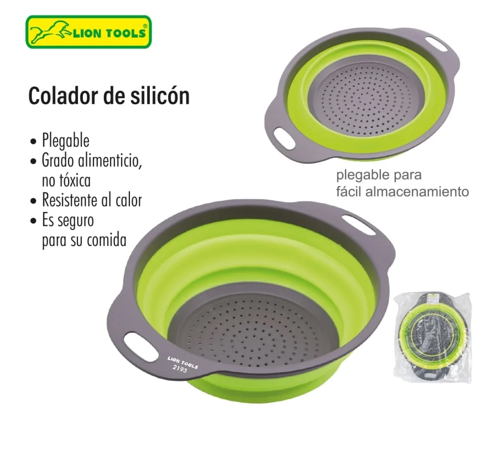 Código: LION-2193 | Marca Lion tolos | Diámetro 220 mm | Altura 80 mm | Plegable | Grado alimenticio no toxico | Resistente al calor | Es seguro para su comida