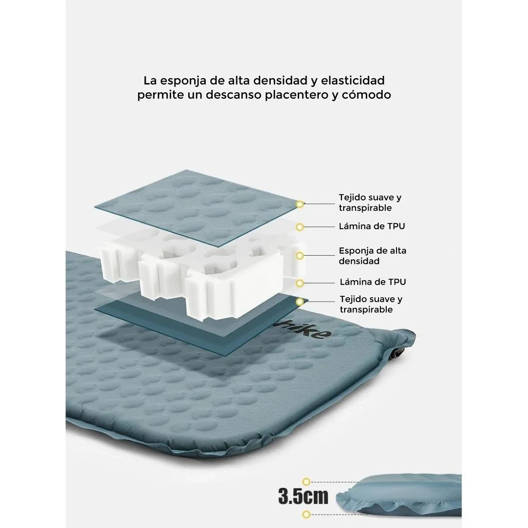 - La esponja es de 3.5 cm de grosor. Esto brinda gran confort y amortiguación. Además, este material tiene buena compresión, por ende, se compacta sin problemas.