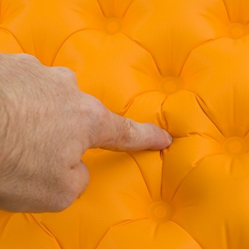 Tiene un grosor de 5 cm y un R-Value de 3,1, por lo que es colchoneta hinchable recomendada para climas templados (de primavera a principio de otoño). La Ultralight aislante está fabricada en Nylon 30D y 40D por laminación TPU extruida con tratamiento antimicrobiano. Además, incorpora un aislamiento de Exkin Platinum y Thermolite que evitará que estés en contacto con el frío y la humedad y te permitirá tener un mejor descanso durante tus aventuras.