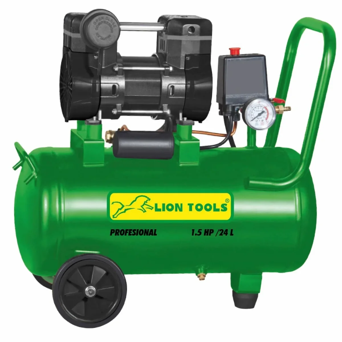 Compresor de aire libre de aceite 24 Litros sirve para para comprimir aire sin usar aceite como lubricante interno. Es necesario para usar cualquier herramienta neumática, inflar o sopetear objetos, para uso casero y de reparaciones rápidas