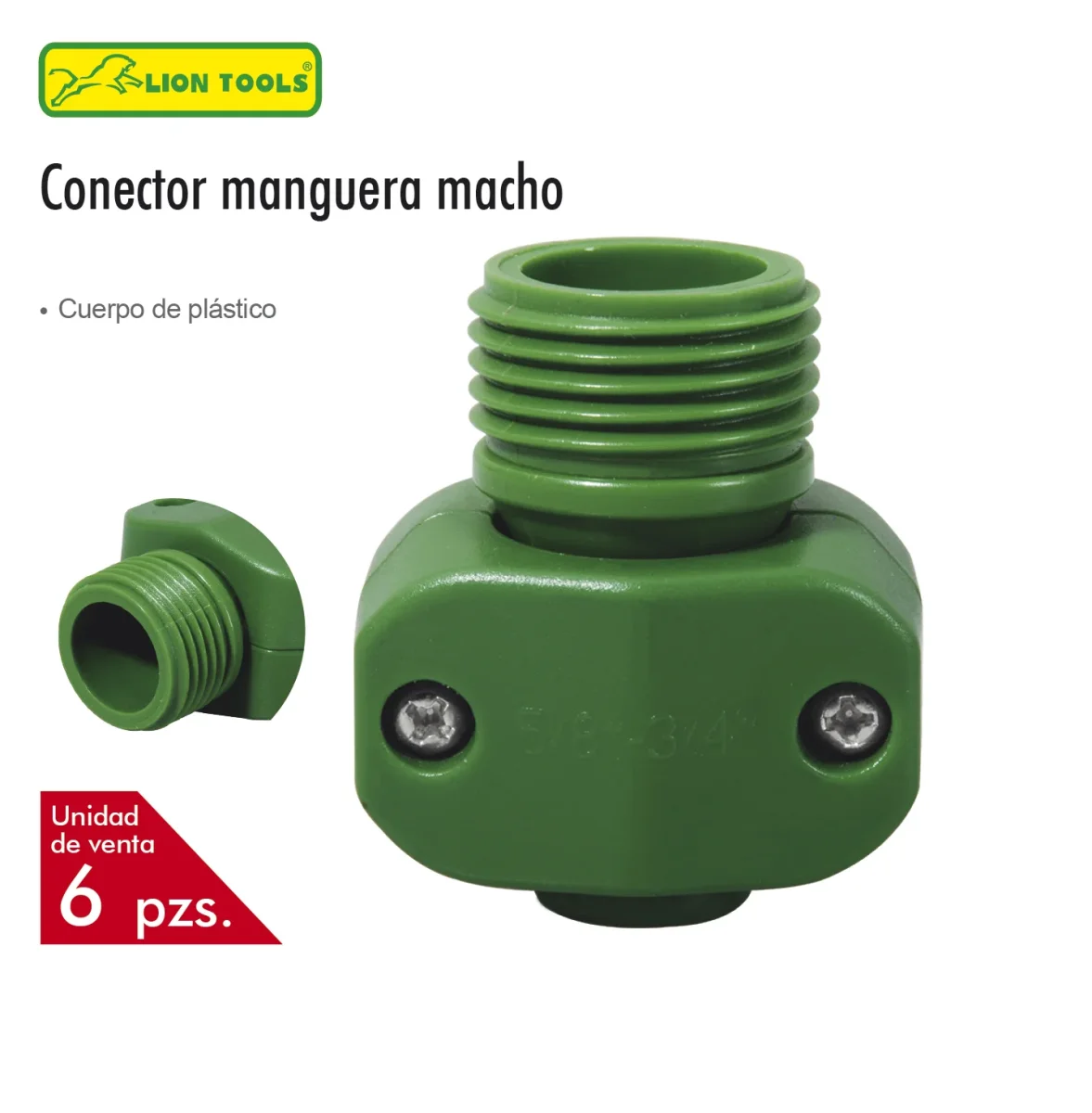 CONECTOR PARA MANGUERA 5/8″ – 3/4″ MACHO PLASTICO 6 PZS