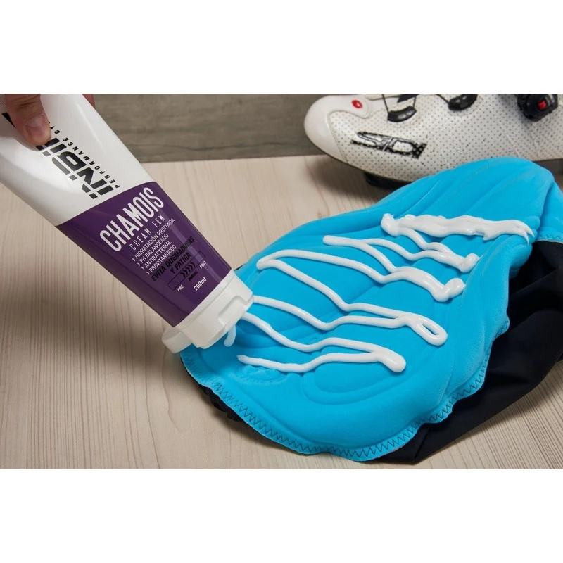 Antes de la actividad física aplicar una cantidad generosa de crema en la badana para garantizar la efectividad del producto.