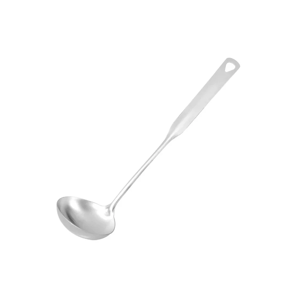 Cucharon de acero inoxidable es un utensilio de cocina que se emplean para servir o manipular alimentos líquidos o semilíquidos como sopas, caldos o salsas.