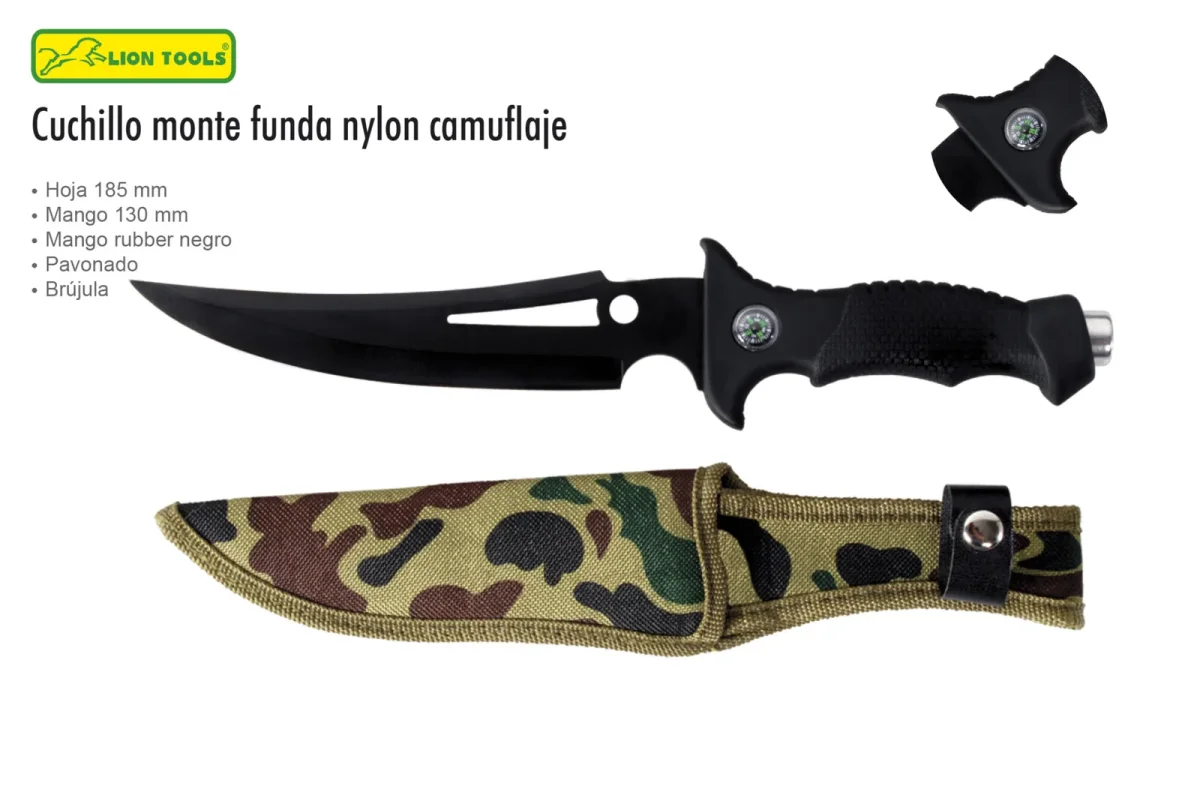 CUCHILLO 7 RUBBER BRUJULA FUNDA LION TOOLS