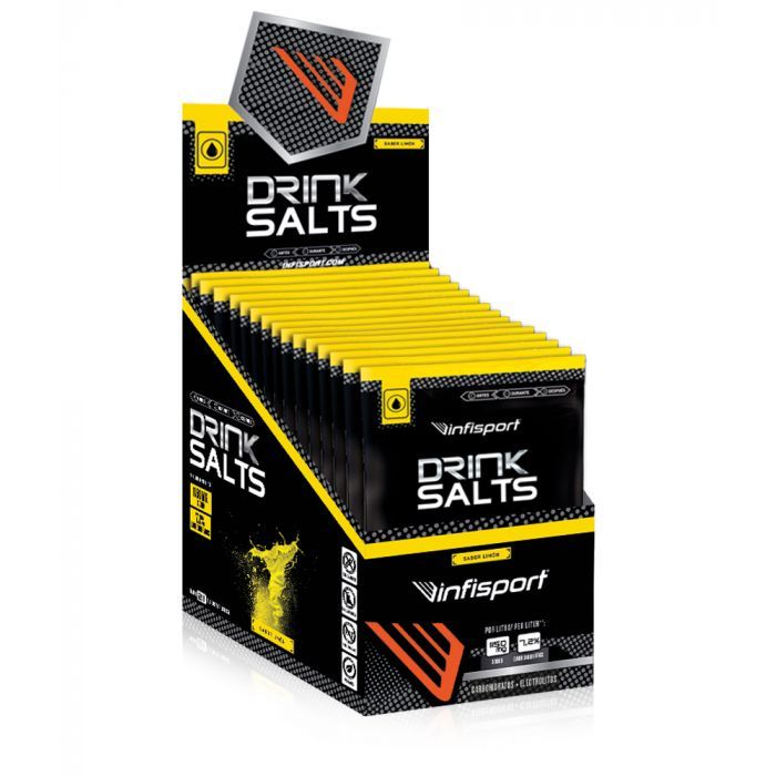 DRINK SALTS se presenta en estuche con 15 sobres de 40 g sabor naranja y limón.