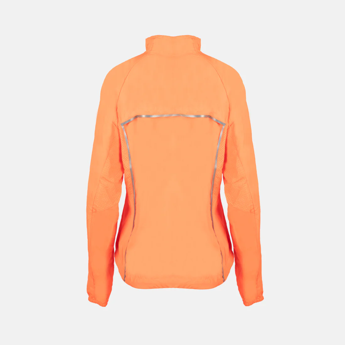 Mejora tu rendimiento con esta chaqueta ligera de running y trekking, equipada con membranas y tejidos especiales para una protección completa contra el clima. Diseñada con presilla para el pulgar y bajo ajustable para mayor sujeción, con zonas de ventilación y detalles reflectantes en la espalda garantizando seguridad.