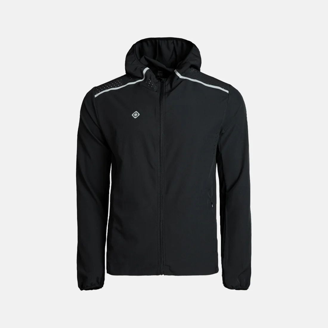 El diseño incluye capucha ajustable, presillas para el pulgar que mantienen las mangas en su sitio y protegen las manos, así como bolsillos ventrales con cremallera para guardar de forma segura objetos personales. La cremallera frontal completa con tapeta interior mejora la protección contra el viento, mientras que los detalles reflectantes en frontal y espalda aumentan la visibilidad en condiciones de poca luz.
