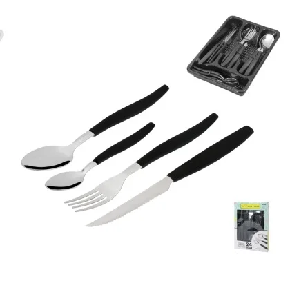 Juego de cubiertos color negro es indispensable para la cocina, ya que trae varios utensilios necesarios para comer, este juego es para 6 personas, lo cual es una buena cantidad, ya sea sólo para uso personal o para invitados.