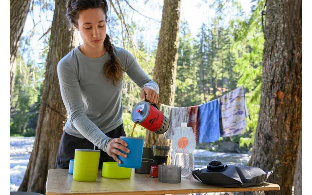 Su quemador radiante y su diseño cerrado a prueba de viento permiten que el hornillo lleve el agua a ebullición rápidamente y funcione incluso en condiciones meteorológicas que dejan a otros hornillos solos en el frío. La batería de cocina integrada con intercambiador de calor incorporado transfiere eficazmente el calor a la olla firmemente anclada para que pueda disfrutar rápidamente de una verdadera comida o bebida caliente después de una excursión, un paseo en bicicleta o una remada. El sistema todo en uno cabe dentro de la olla para su transporte. Esto ahorra un valioso espacio y tiempo para que puedas disfrutar mejor de tu aventura.