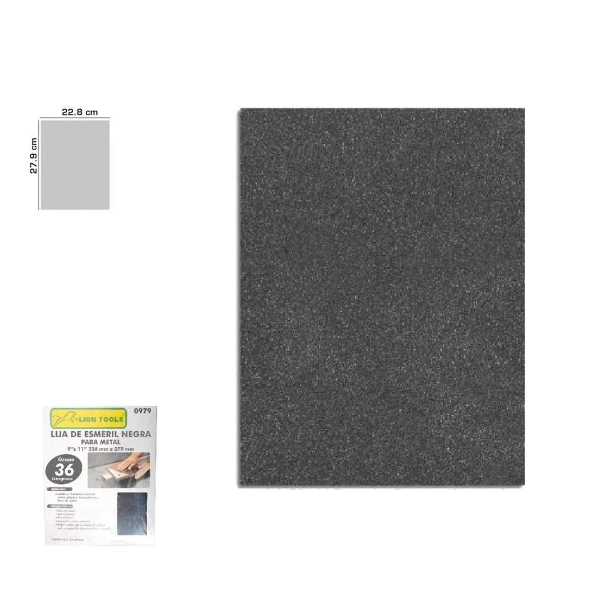 Lija de esmeril negra grano 50 se usa para lijar metal, dando un acabado uniforme en las superficies. Fabricada en oxido de aluminio con respaldo de tela de algodón que le da alta resistencia y durabilidad