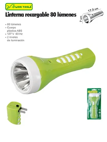 LINTERNA RECARGABLE 1W 1 LED LARGO ALCANCE VERDE LION TOOLS
