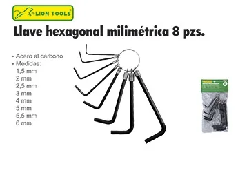 LLAVE HEXAGONAL 8 PZS MM TIPO LLAVERO LION TOOLS