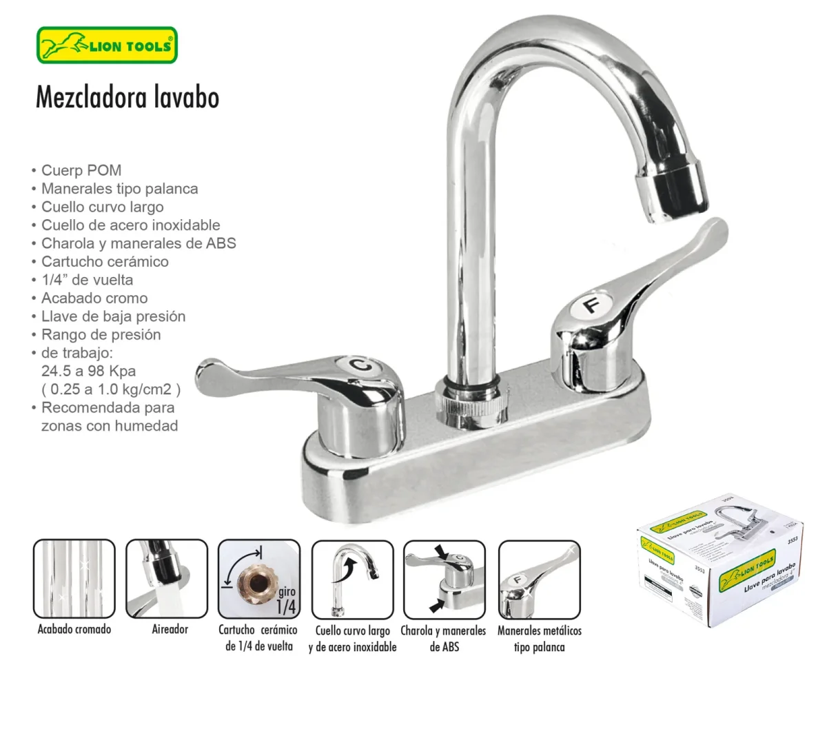 Mezcladora para lavabo cuello largo plastico abs lion tools