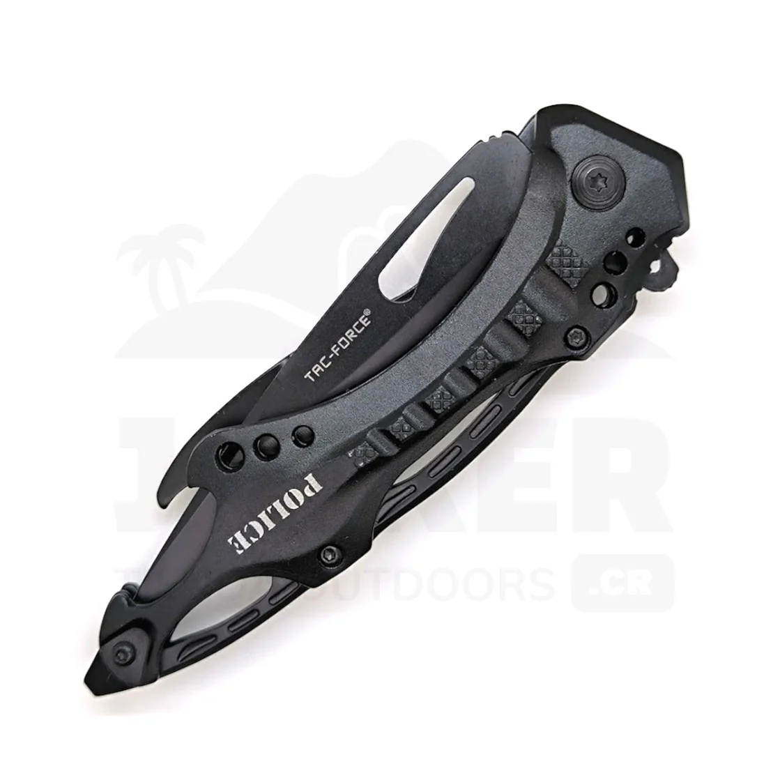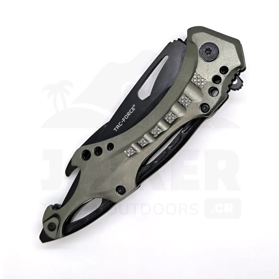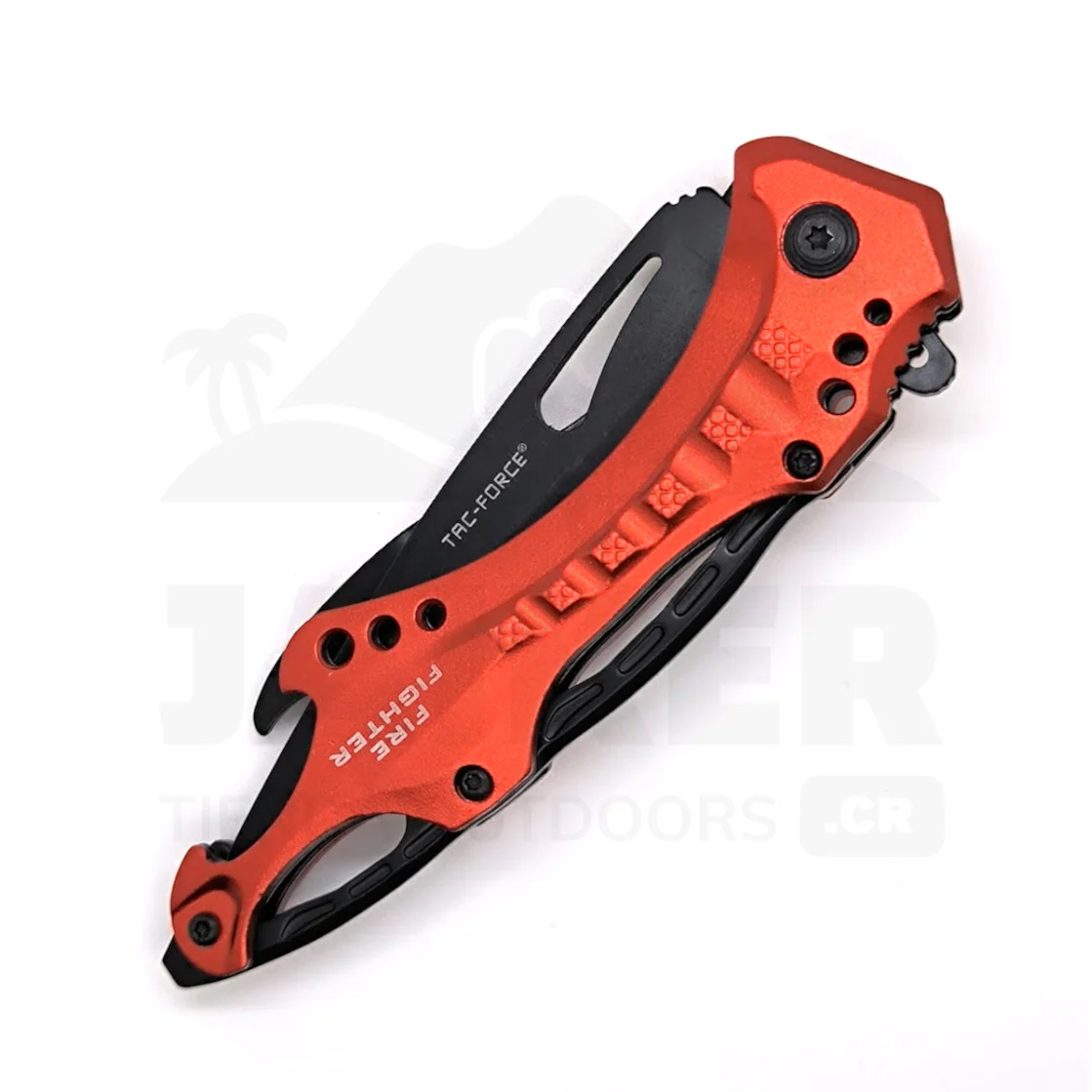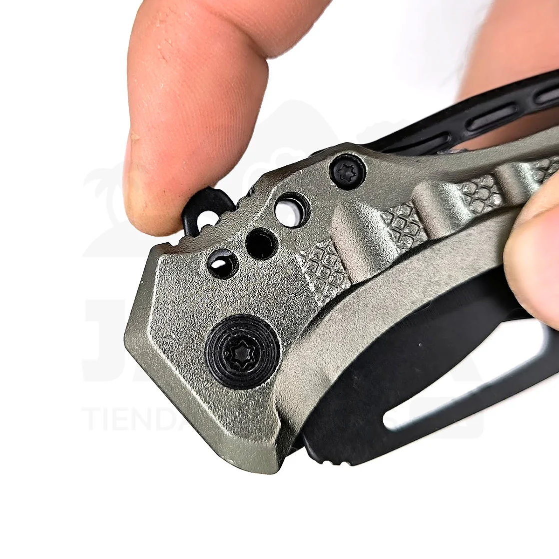 En el extremo del mango posee una punta que puede usarse como destornillador plano o quebrador de vidrios. También posee abridor de botellas.