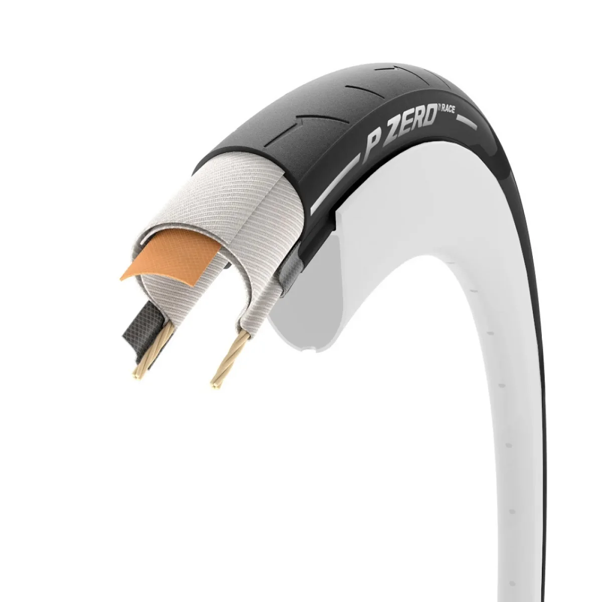 P ZERO™ Race combina las ventajas de la tecnología tipo cámara en un neumático de ciclismo completo para sesiones de entrenamiento y carreras de alta intensidad. La carcasa TechBELT Road mejora la fiabilidad contra los pinchazos, sin afectar el peso del neumático, mientras que el compuesto especial SmartEVO mejora el agarre tanto en asfalto húmedo como seco en comparación con los compuestos de ciclismo anteriores de Pirelli.
