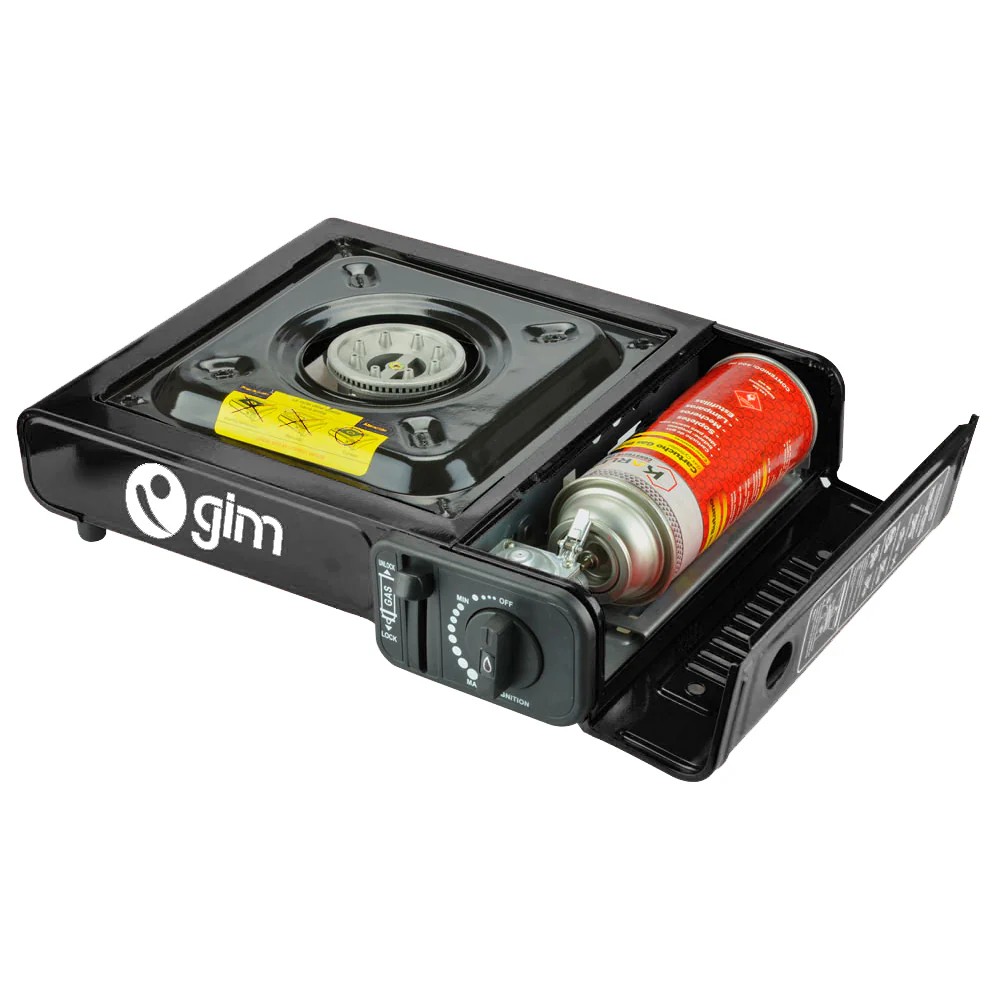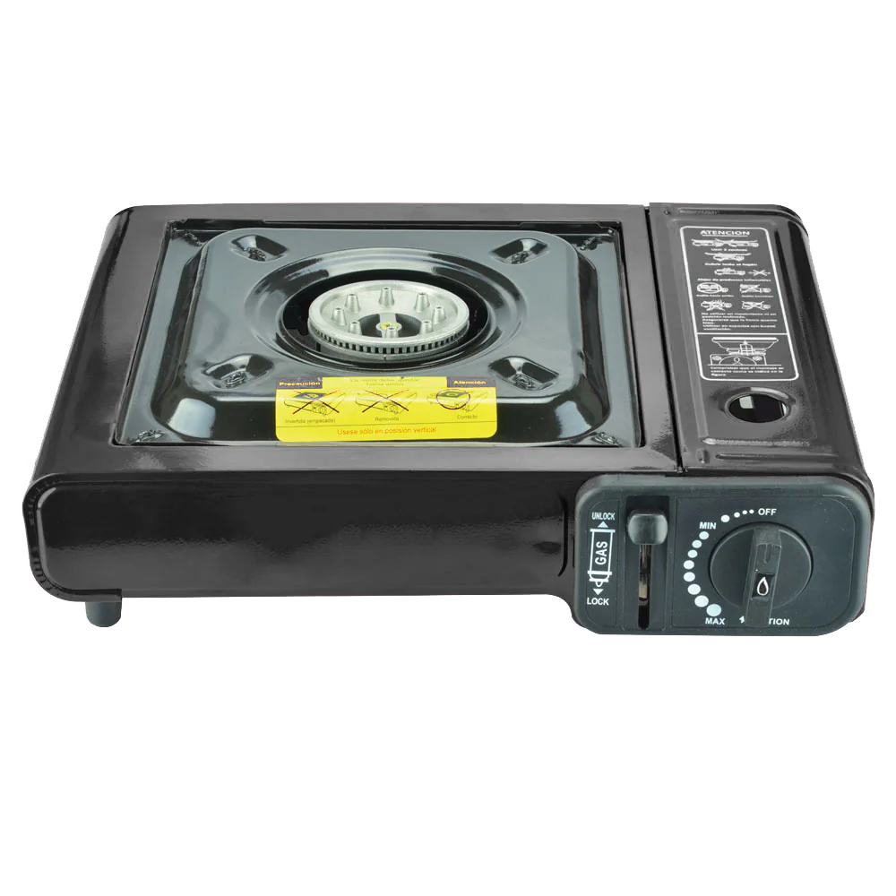 Parrilla de gas butano para campismo, compacta y con una potente flama para cocinar lo que mas se te antoje.