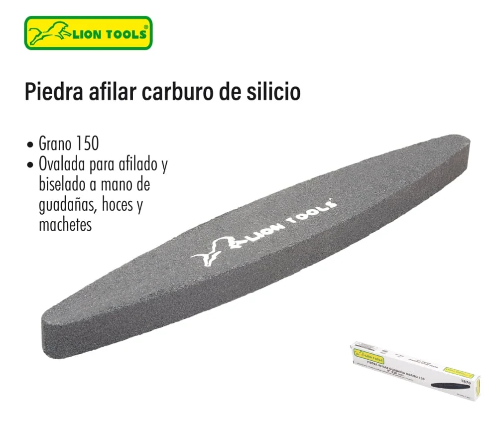 Piedra para afilar ovalada Código: LION-1870 | Grano 150 | para afilado y biselado a mano de guadañas, hoces y machetes