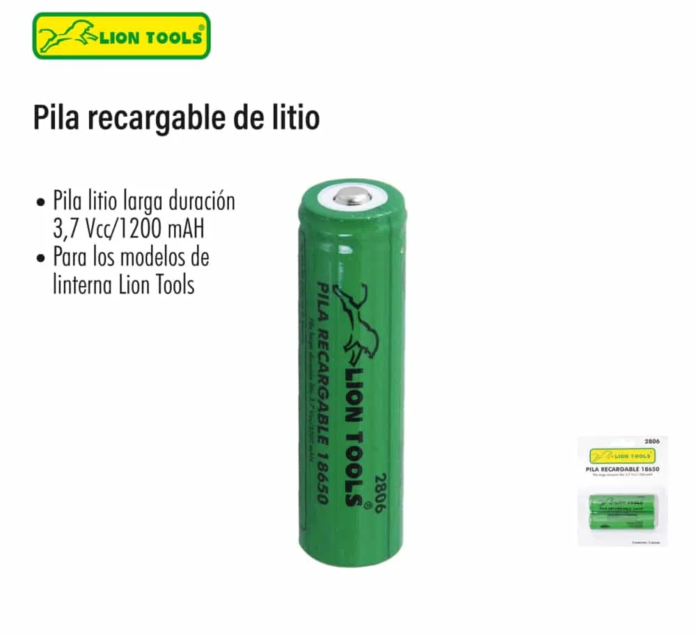 Código: LION-2806 | Pila de litio larga duración 3.7 Vcc/1200 mAH | Para linterna lion tools