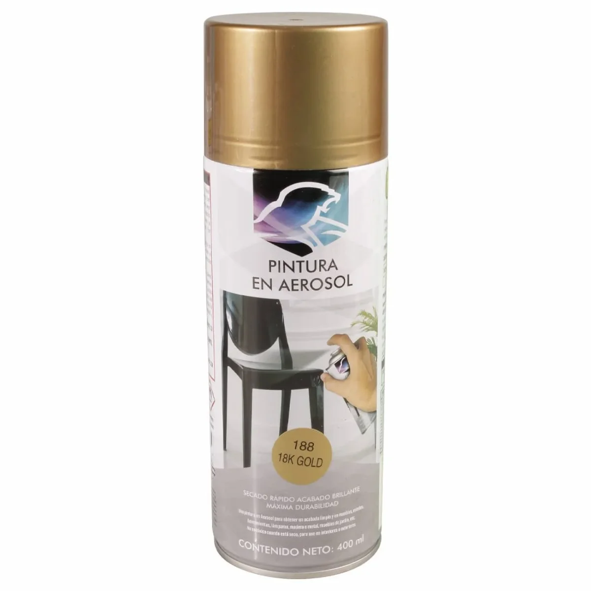 Pintura en aerosol oro brillante es fácil y rápida de aplicar gracias a su práctico dosificador y su lata presurizada, que permite una pulverización uniforme y profesional en segundos. Da un acabado brillante o reflejante, simulando al metal.