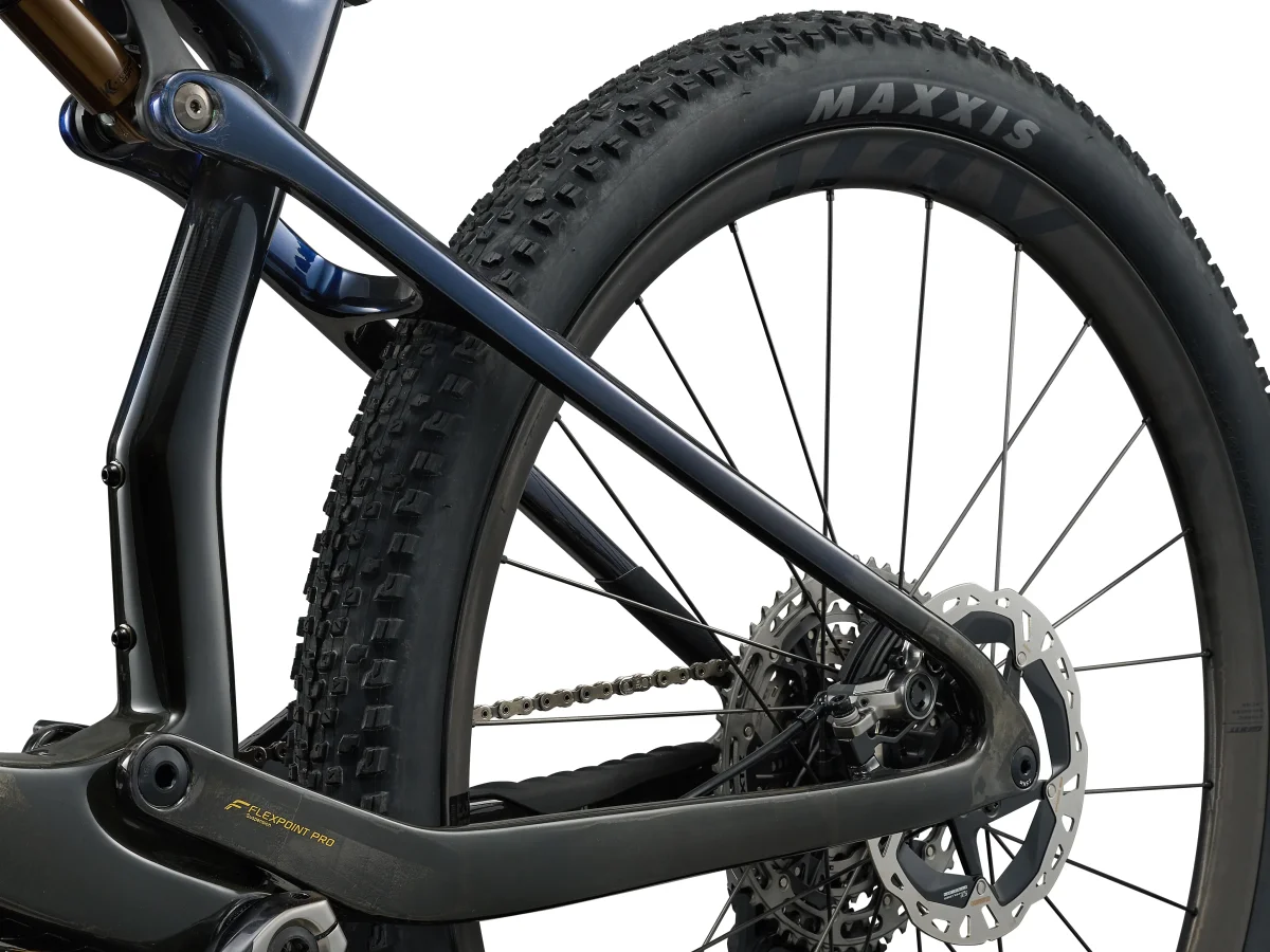 Engineered for XC efficiency, control, and responsive handling, this 120mm single-pivot system is semi-integrated beneath the top tube with a full-composite swingarm to minimize weight while maximizing traction on technical terrain. Unlike other single-pivot designs, FlexPoint Pro isolates suspension performance from frame flex, eliminating unwanted resistance so every bump is absorbed exactly as intended. The result is smoother small-bump sensitivity, more consistent control, and a more efficient ride.
