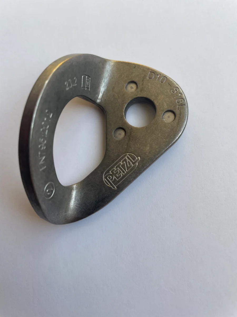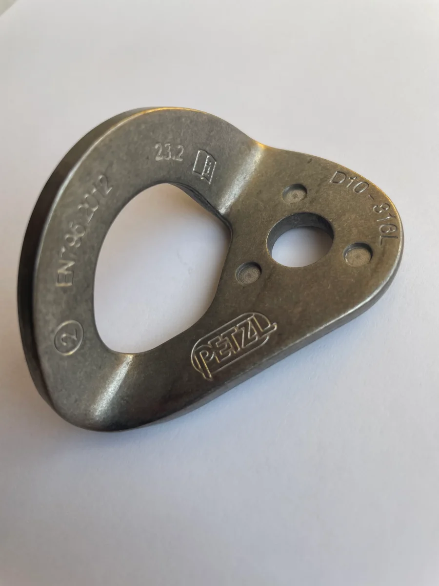 – el ancho del orificio permite la instalación de dos mosquetones al mismo tiempo