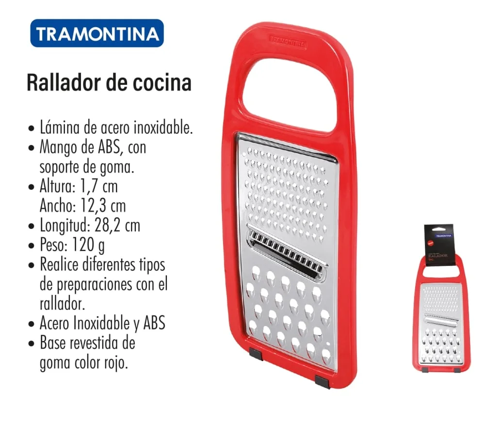 Código: LION-3199 | Marca Tramontina | Lamina de acero inoxidable | Mango de ABS con soporte de goma | Altura 1.7 cm | Ancho 12.3 cm | Longitud 28.2 cm | Peso 120 g | Cuenta con 3 diferentes cortes
