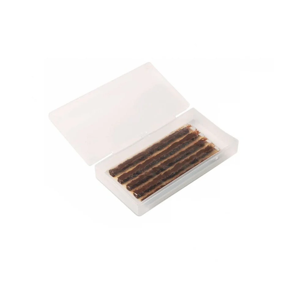 Las tiras de reparación son un componente común de los kits de reparación tubeless y tube-type. Estas tiras son generalmente adhesivas y se utilizan para cubrir y sellar las áreas dañadas en el neumático. Las tiras de reparación vienen en un paquete con varias tiras. Es importante asegurarse de comprar tiras de reparación adecuadas para el tipo de neumático que se está reparando, ya que algunas tiras solo son compatibles con neumáticos tubeless o tube-type.Referencia: HH8230