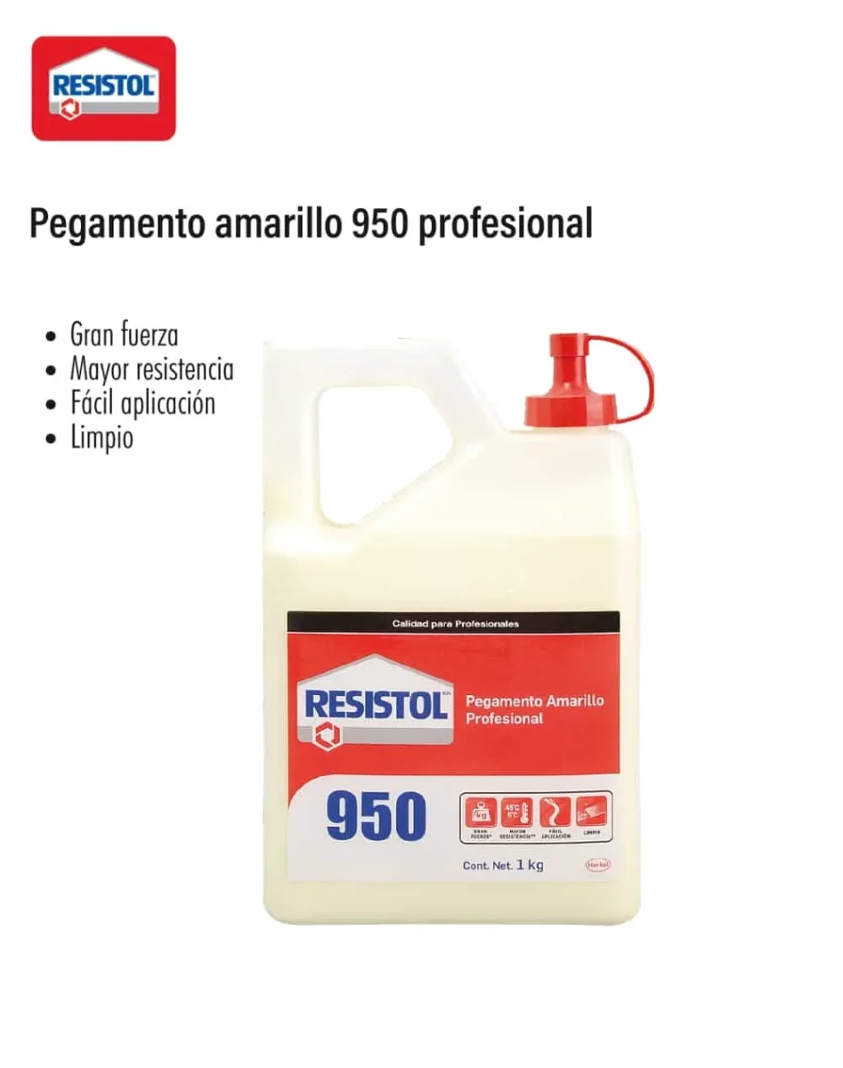 Resistol amarillo 950 Código: LION-1256 | 1 kilo | Gran fuerza | Mayor resistencia | Fácil aplicación | Limpio