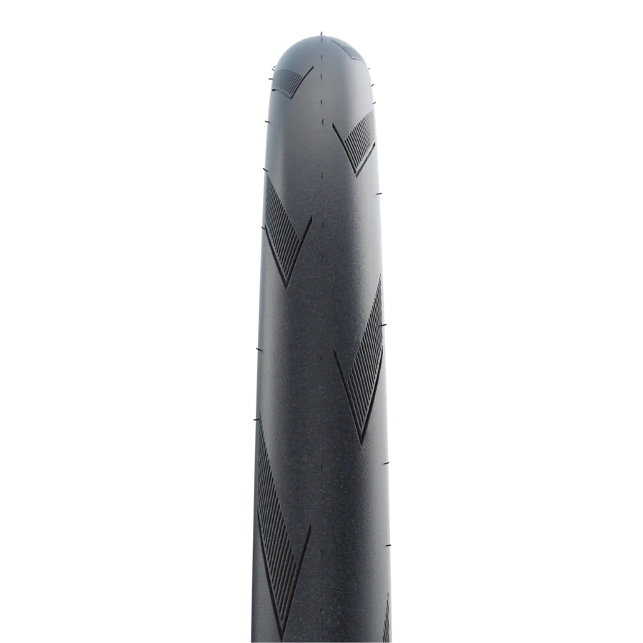 El Schwalbe Pro One es un neumático de carretera de alto rendimiento que combina suavidad de rodado, velocidad y control al más alto nivel. Desarrollado como uno de los mejores neumáticos de ruta de la marca, entrega una experiencia superior gracias a su construcción Super Race con tecnología Souplesse, que optimiza la eficiencia y la sensación sobre el asfalto. El compuesto ADDIX Race proporciona un agarre excepcional en seco y mojado, mientras que la protección V-Guard reduce el riesgo de pinchazos sin afectar el rendimiento. Es la referencia para ciclistas exigentes que prefieren el uso con cámara y buscan un rendimiento de nivel profesional en cada salida.
