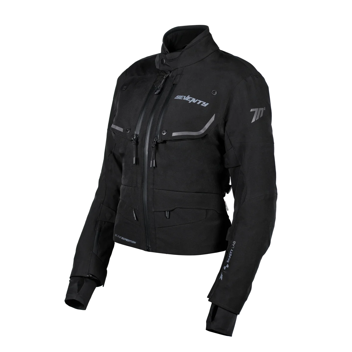 The Seventy 70 SD-JT47 Expedition Woman jacket is crafted for the most demanding motorcyclists, offering protection and comfort in any weather and on any terrain. Made from high-tenacity laminated fabric, this jacket integrates Dry70, Warm70, and Atop technologies, ensuring waterproofing, thermal insulation, and a customizable fit for unmatched comfort during long rides.