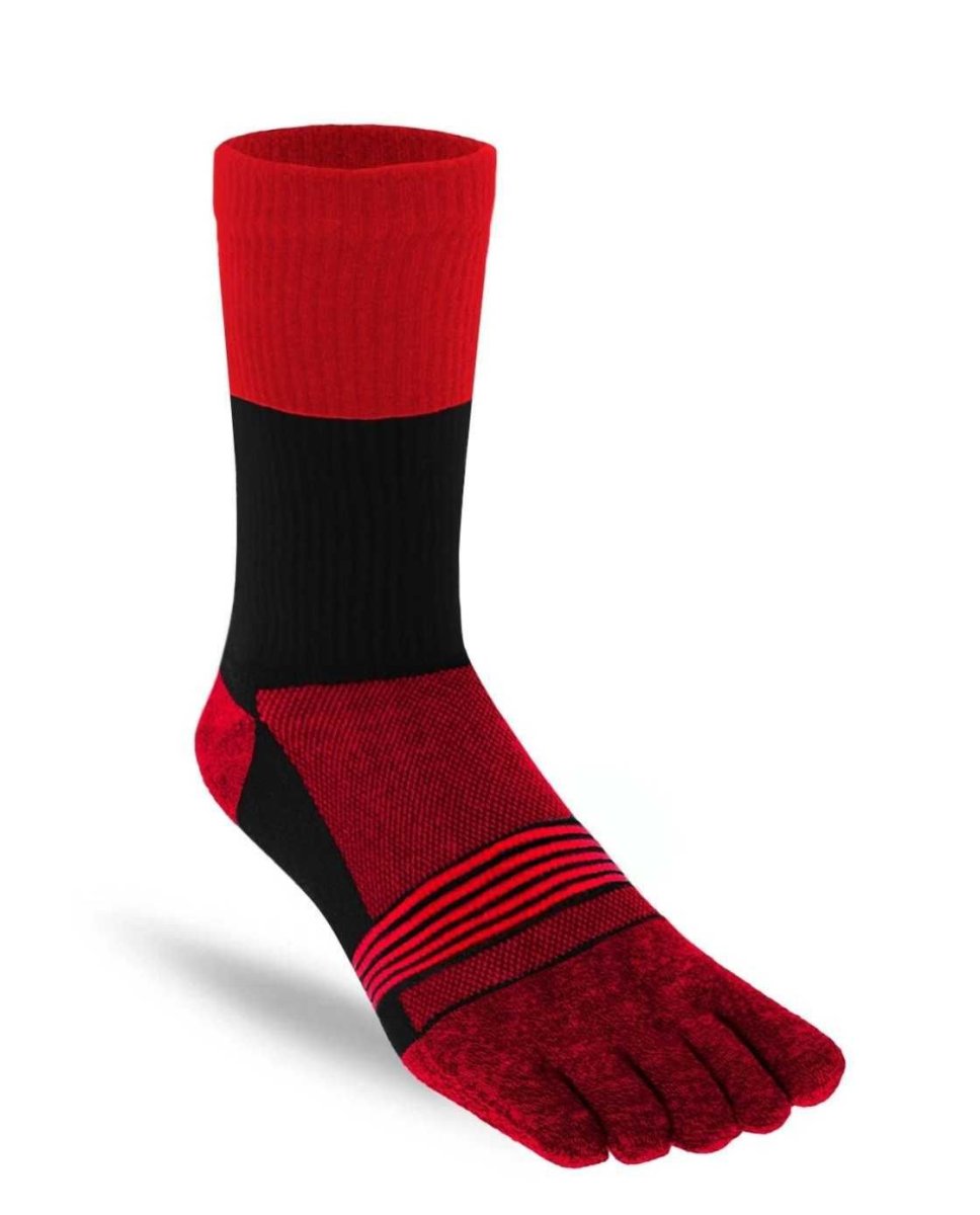 Calcetines de dedos ligeros de media altura para la práctica de running y trail running, protegen de la aparición de ampollas y permiten la separación natural de los dedos de los pies. Los Trail&Run MID Toe Socks combinan resistencia a la abrasión gracias a su alto componente en Nylon (67%) con una muy buena gestión del calor y la humedad gracias a la fibra Coolmax®. Un calcetín técnico fino que ofrece un elevado rendimiento y durabilidad tanto en salidas de asfalto como en montaña en medias y altas temperaturas.