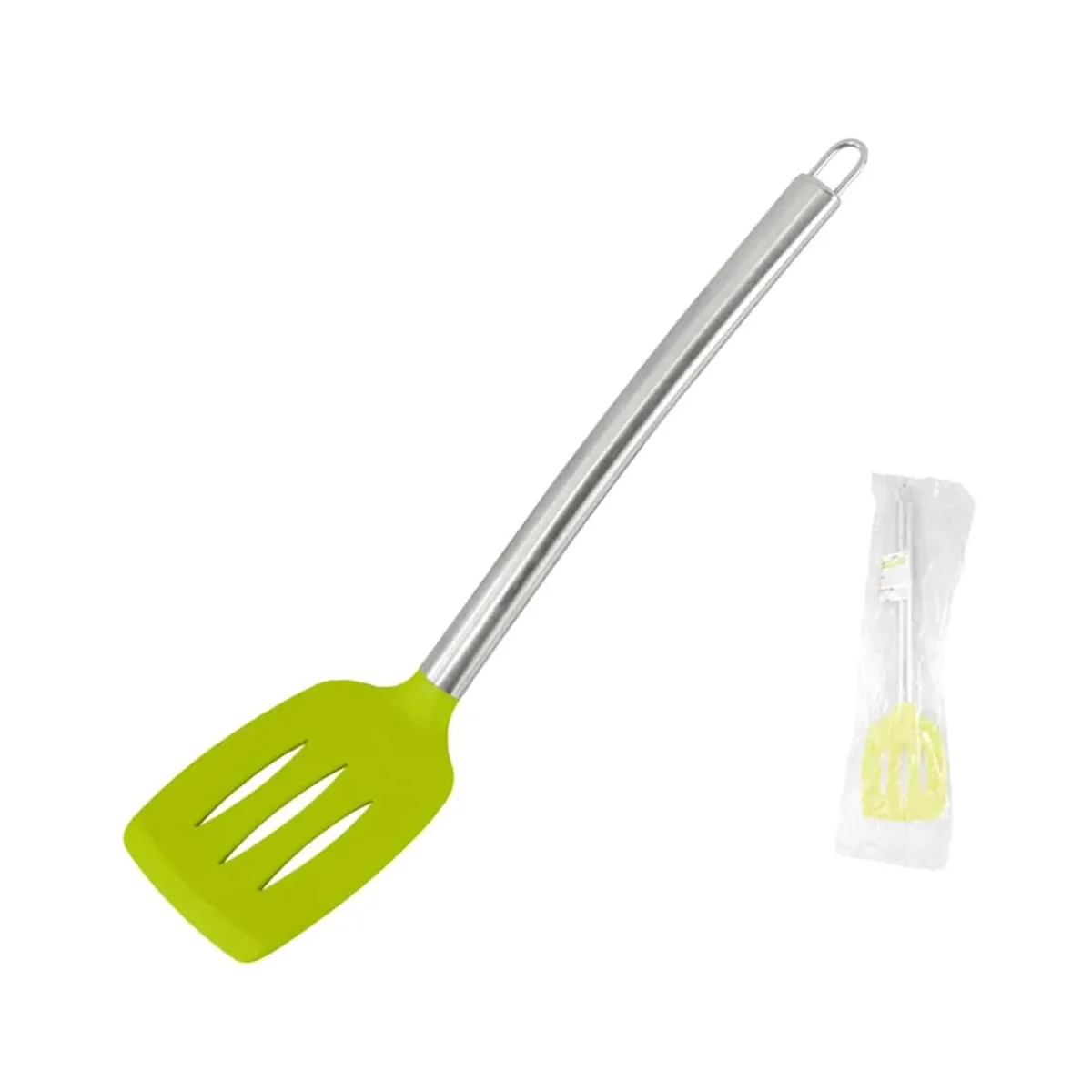 Volteador ranurado de silicon es un utensilio de cocina plano con ranuras en la pala y fabricado con silicona de grado alimenticio. sirve principalmente para voltear, levantar o servir alimentos mientras deja escurrir el exceso de aceite o líquidos
