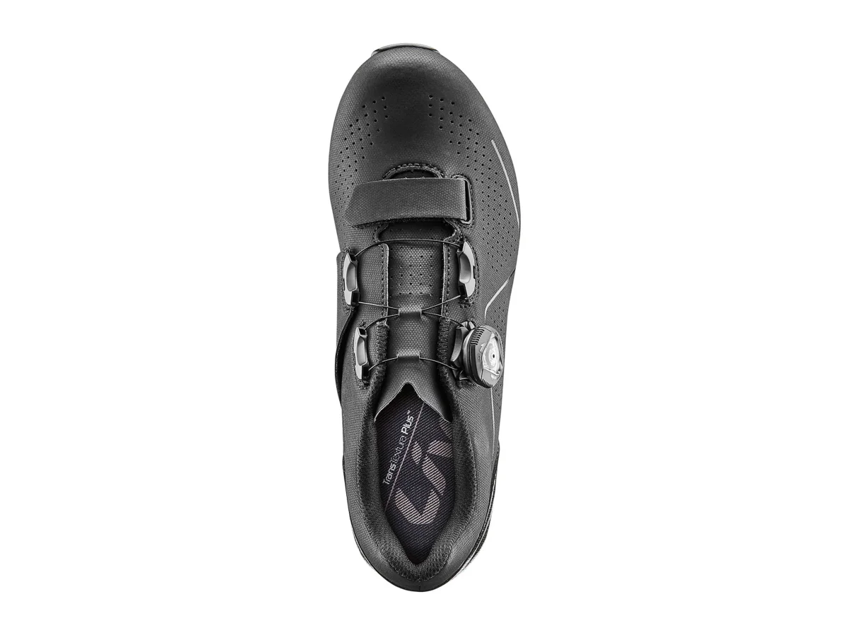 Esta tecnología con elementos de TPU moldeados por inyección, ayuda a proteger la suela de compuesto de nailon ExoBeam del desgaste cuando te bajas de la bicicleta.